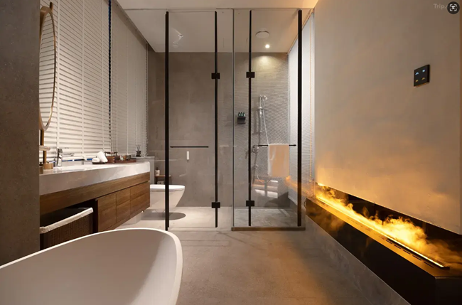 The hotel's ambiance is often described as warm, cozy, and aesthetically pleasing, blending modern aesthetics with traditional Chinese style. The presence of resident cats adds charm and homeliness to the environment.