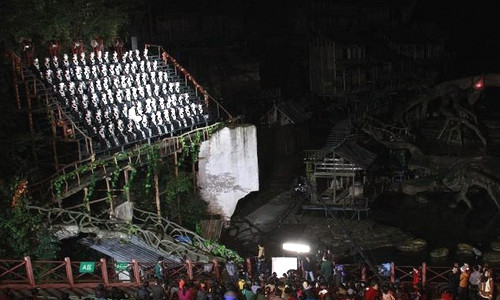 On the night of November 13th, when the crew of the world of love came to zhangjiajie tianmen montain to shoot landscape of the fairy fox canyon grand theatre, they were deeply shocked by the magic atmospheric beautiful play scene and odd beautiful love story. The crew were said to have a more intuitive mind impact, to convey new creation passion to the true love theme of “love unbounded”.