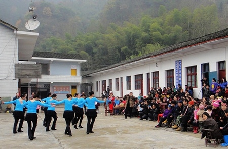 On December 16th, ZJJ Wulingyuan Yu Quanyu village elementary school has a jollification, the villagers are busy rehearsing square dance, festival lantern opera, art show, at the end of the month, makig preparation for the upcoming cultural art festival.