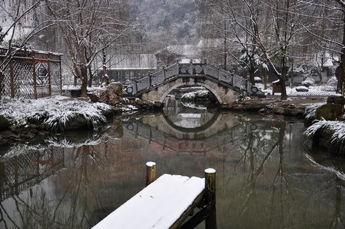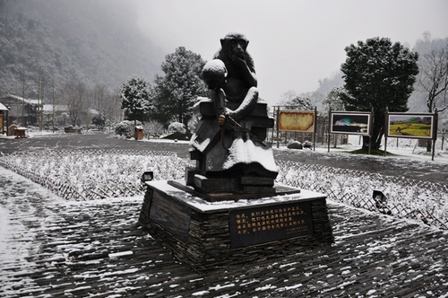 The snow-capped ecological square of Yellow Dragon Cave seems more enchanting than ever.