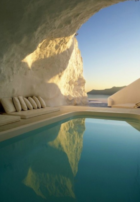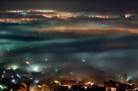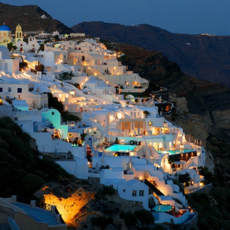 Santorini night hazy.