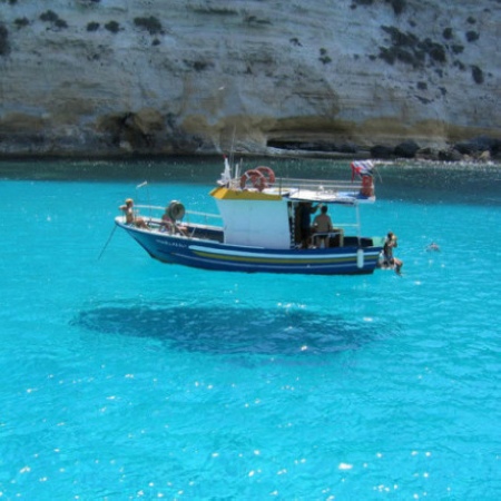 Pei Lajie Islands (Pelagie Islands) is located in the central Mediterranean seawater transparent like a ship floating in the blue sky.