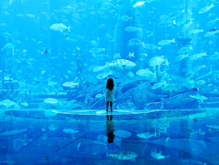 The world’s largest aquarium through the glass to see the wonders of another world.