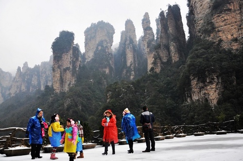On February 8th, the world natural heritage zhangjiajie wulingyuan scenic spot dancing with snowflakes, celebrated the spring festival. By the time of 14pm, the Tianzi mountain, YuanJiaJie, Huanglong hole and other scenic areas were covered by a thin layer of snow. Some area also appeared rime, comparing with normal style, it seemed especially enchanting, making a lot of joy in zhangjiajie.