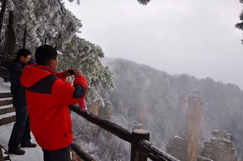 In Tianzi mountain scenic spot, annual tourists almost came from guangdong and Hong Kong family. There were many tourists from Europe and the United States to see the rare zhangjiajie landform snowscape, with full of praise. They also perfected service facilities and attitude.