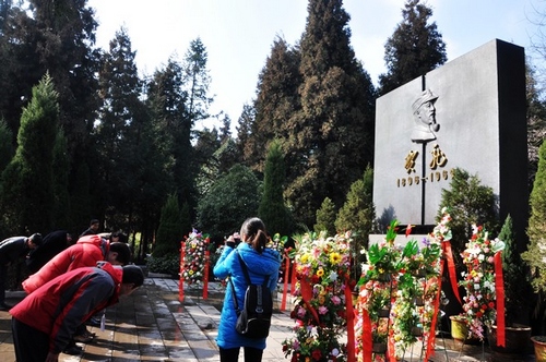 Zhu Yongwen and other people respectfully present a basket of flowers to Marshal Helong and all people bowed three times to him in order to express people’s measureless admire and advocate and pass on fighting spirit of elder revolutionist and boost construction of international tour and leisure holiday zone in Wulingyuan.