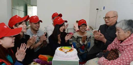 On March 5, the Hunan Daily Press Group Youth League Committee launched an activity called "Learn from Lei Feng, Warm People's Heart", which organized League Members to visit the residents of the Elderly Care Center at the No. 3 Changsha Social Welfare Institution. The picture above shows the League Members celebrating the golden 50thanniversary of 80-year-old Zheng Mingfu and 73-year-old Zhou Shouying.