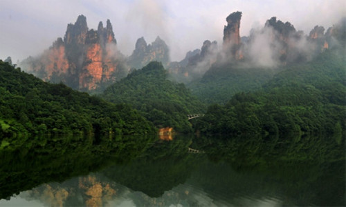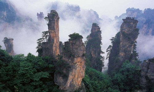 Zhangjiajie spring, is a piece of transparent green. Entering into zhangjiajie, it seems to see a pair of quiet picture scroll.