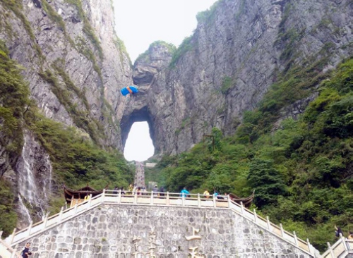 Huangshi Village. It is also one of the concentrate scenic spots here. People always say: "It is no avail of your trip to Zhangjiajie, unless you come to the summit of Huangshi Village. "A famous poem said :"For a better view of a further distance, ascend one more level. "So, to appreciate the fantastic scenery, please follow me to climb up the mountain through a narrow and zigzag way. There was only one way to come to the top of the mountain in ancient time, today the road we are going was paved about 10 years ago.