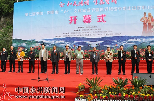 On April 28th, The Seventh China Yangmingshan“HE”Culture and Tourism Festival themed with “Harmoniously Beautiful Yangming”and opening ceremony of Miss World Tourism walking into Yangming Mountain,Was held in Yangming,Yongzhou,national forest park.About 10,000 tourists from different places and circles attend this ceremony.