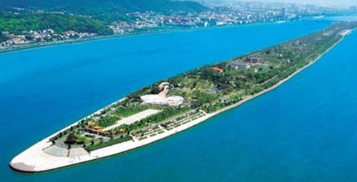A statue of Chairman Mao Zedong, a Hunan native, was erected on Juzi Island in the city. Zhou Baiping / for China Daily