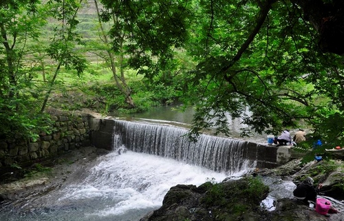 We arrived after two hours’ driving. It is the very early summer when grasses are green and tender, flowers are in blossom. Crops in the terrace are healthy and verdant .On both banks of Luoshui’s country road, it is easy for us to catch a glimpse of insects and wild plants. Look, here was a beautiful butterfly and an unidentified red wild flower.
