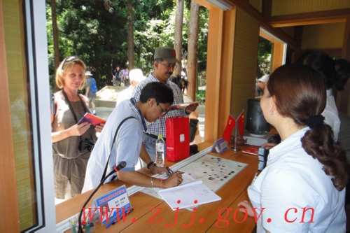 On May 23, the voluntary information desk in Yellow Stone Village charged by member of the Communist Party received a group of 15 representatives who was to attend the international conference on colored gemstones. They are mostly from Korea, Singapore, Canada, America,India etc. Accompanied by the staff in the scenic spots, they were very satisfied with the management and service, leaving blessings and greetings on comments book.