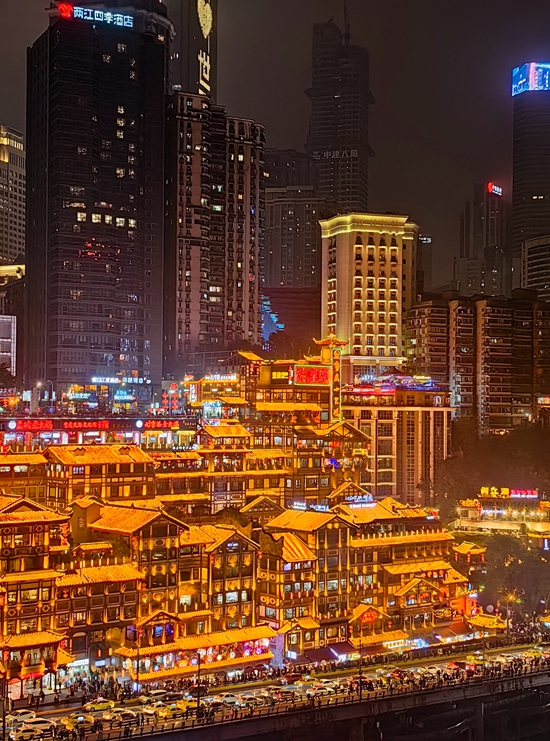 Today's Activities:Chongqing city tour-Ciqikou Street,Hanging Village-night views of Hongya cave.
