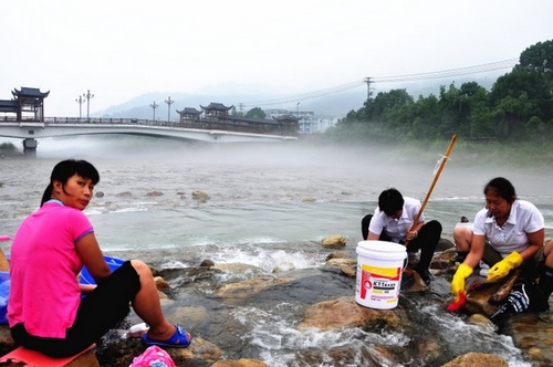 White gauze is slowly floating above the river with groups of Tujia buildings in far distance. Several women are washng clothes near the river with the advection fogs wrapped. Around 8 o’clock in the morning, the fogs are getting thinner and narrower but still stretching from the left side of the river to the right. The whole wonders of the beautiful scenery have attracted many citizens and photography fans.